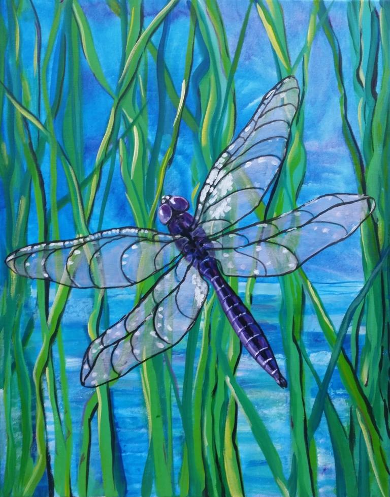 I made myself a stencil to trace around- if you want to use the stencil it is under section 3:2.If you prefer to freehand the dragonfly, you should totally do so! I looked at several websites to get reference materials for this dragonfly. The free picture library, PixaBay.com has some good ones. However, when searching for dragonflies, I found that their resources do not distinguish between damselflies and dragonflies. The characteristics of a dragonfly is that its wings are always straight out from its body, and a damselfly, when resting, folds its wings in close to its body. Dragonflies’ bodies are also sturdier than the damselfly.